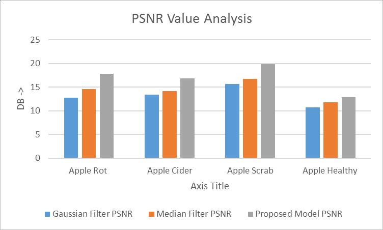 As shown in figure 4, the PSNR value of proposed model iscomparedwithexistingfilterslikeGaussianfilter and median filter for image denoising. It is analysed that proposed model has high PSNR value as compared to Gaussianandmedianfilter.