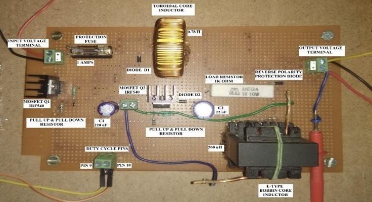 WM generation enhance performance. Initially, power is sourcedfromthegrid,convertedto12VDC,andboostedto 24Vifneeded.Afour-channelrelayselectsthebestpower source,interfacing with an Arduino Nano for regulation. The cascaded converter maintains constant voltage, reducing ripple and switching loss. This project demonstrates the advantages of using a cascaded buck-boostconverterforPVmodules,improvingefficiency andperformance.