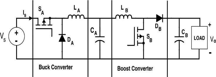 Thecascadedbuck&boostconceptisusedinthisworkto obtainnoninvertingoutputtoruntheconstantDCloadas showninFig.1.Thedesignequationshavebeenpresented, and performance parameters have been related using theoretical calculations and simulation. The operation principle and steady-state performance are analyzed and finally, the experimental results are given, moreover, the derivationoftheproposedconverterisalsopresented.