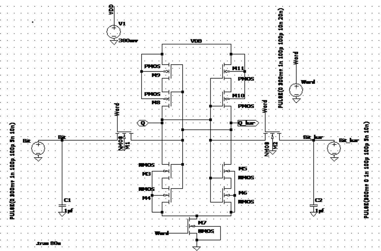 AllSRAMcelldesignswereimplementedandsimulatedusingthefollowingspecifications: