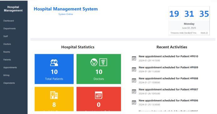 Security can be strengthened by implementing role-based accesscontrol(RBAC),assigningdifferentlevelsofaccessto administrators, doctors, and front-desk staff. The system could also be extended with RESTful API integration to supportinteroperabilitywithdiagnosticlabs,pharmacies,or national healthcare databases. Real-time dashboards with predictive analytics could provide deeper operational insights for hospital administrators. To improve patient engagementandcompliance,anotificationsystemviaSMS or email can be introduced for reminders related to appointments,medications,orbilling.