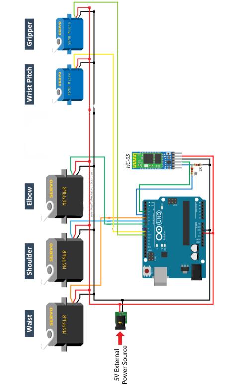 A control algorithm was programmed in C++ and uploadedtotheArduinoUno.Thecodehandledservo actuation for each joint, allowing for smooth and accuratemovements.
