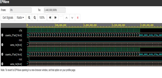 Finalvotecountproducedbycountersmatched thetestbenchinputsexactly.