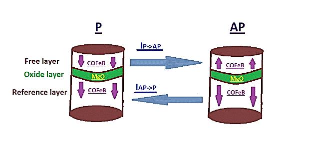 Binary bits in magnetic memory based on Magnetic Tunnel Junctions (MTJs) can be stored in two distinct modes: Antiparallel (AP) and Parallel (P), as illustrated in Fig-1