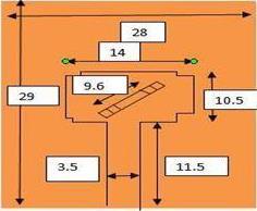 The 1.5 x 0.75 mm diodes are positioned on the corners of the rectangular slot that is 45 degrees rotated along the z axis. Since HPND4005 pin diodes are widely