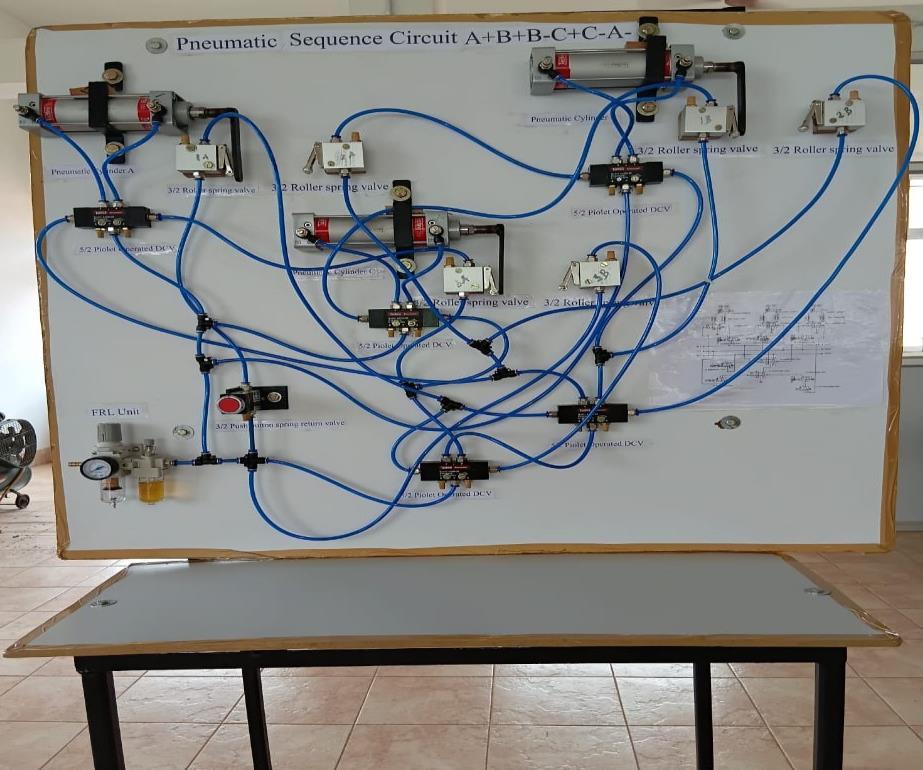 Main aim of project work is design simulate and developmentofpneumaticsequentialcircuitA+B+B-C+C-Aconfiguration. Which is widely used for sheet metal operationlikeclamping,bendingandformingetc.