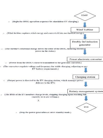 TheDoublyFedInductionGenerator(DFIG)hasemergedas a pivotal technology in the realm of renewable energy, particularly for standalone electric vehicle (EV) charging applications.Itsabilitytooperateefficientlyacrossawide rangeofspeedsmakesitanattractiveoptionforharnessing variable renewable energy sources, such as wind and hydropower.TheDFIG'sarchitecture,whichincludesboth statorandrotorwindingsconnectedtoapowerconverter, allowsforeffectivecontrolofactiveandreactivepower,thus enhancing its performance in fluctuating operational conditions[2]Recentadvancementsincontrolstrategiesfor DFIGs have significantly improved their operational efficiencyandreliability.Forinstance,feedbacklinearization controltechniqueshavebeendevelopedtoaccommodatethe nonlinear characteristics of DFIGs, particularly under magneticsaturationconditions[8].Thisapproachenhances the generator's responsiveness to changes in load and generation conditions, which is critical for standalone applications where stability and power quality are paramount.Additionally,theimplementationofdirectpower control strategieshasbeen shownto reducepowerripple duringgridsynchronization,furtherstabilizingtheoutputof DFIGsinEVchargingscenarios[5].