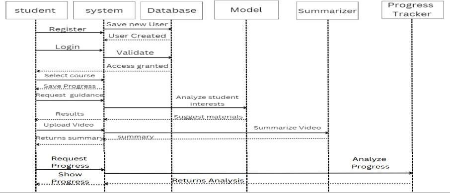 Theproposedsystem, Digital Guide: A Smart Study Planner, aims to bridge this gap by providing a unified platform designed to cater to the diverse academic needs of students. It offers a comprehensive set of tools like text summarization,videocontentsummarizationforenhanced study efficiency, reliable study material curation to reduce search time, and domain exploration facilitation to guide specializationchoices.