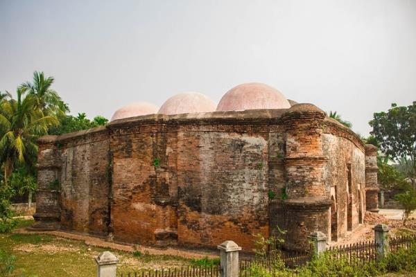 The Nine Dome Mosque: The Nine Dome Mosque, which is an example relic from the Sultanate period in Bengal and exemplifies mediaeval Islamic architecture, is significant both historicallyandculturallybyvirtueofitspresence. It is a reflection of the combination of Persian, Arabic, and indigenous architectural traditions, and it was constructed during the reign of Sultan NasiruddinMahmudShah(1435–1459).Asymbol of Bengal's Islamic heritage and socio-political history, the mosque is significant not only for its architectural significance but also for its role as a symbol.