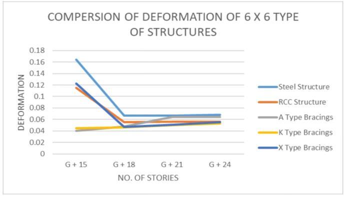 Graph no.3 Comparison of deformation of 6X6m Type of structure