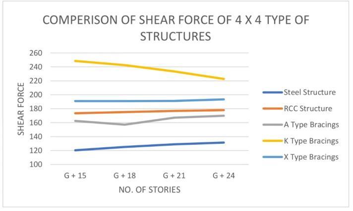 4.3.1 Comparison of shear force of 4mx 4m type of structure