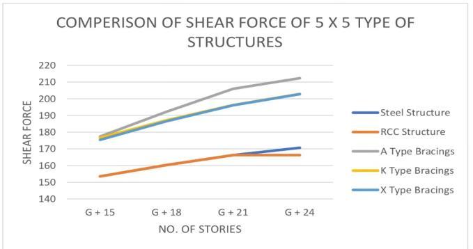 Graph no.5 Comparison of shear force of 5mX5m Type of structure