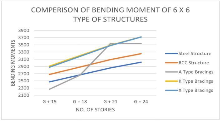 Graph no.9 Comparison of bending moment of 6m X 6m
