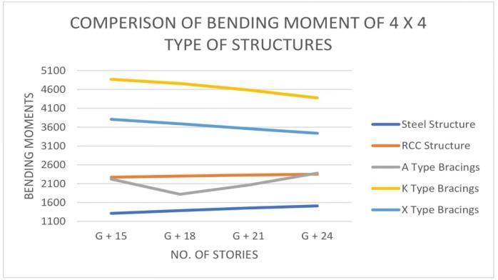 Graph no.7 Comparison of bending moment of 4m X 4m Type of structure