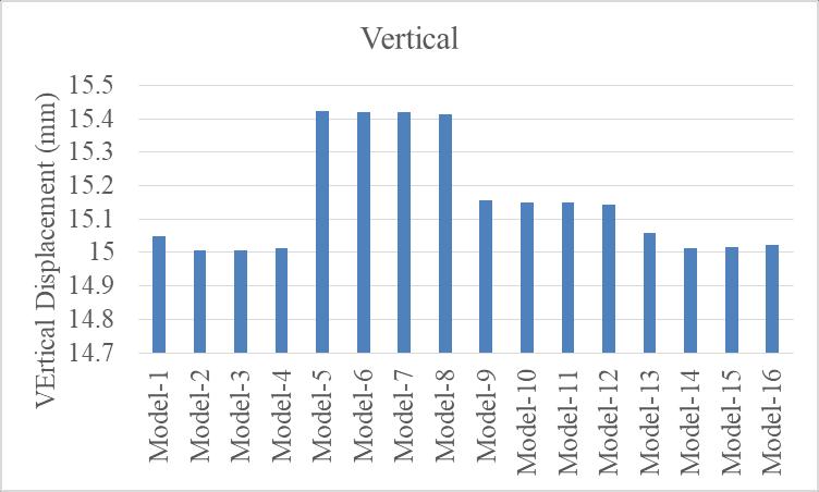Figure4.2displaystheverticaldisplacement(inmm)for16 structuralmodelsunderseismicloading.Thehorizontalaxis lists the models from Model-1 to Model-16, while the verticalaxisshowsthecorrespondingverticaldisplacement values.