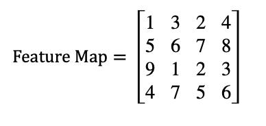 Let’s assume we have a feature map with dimensions ��×��, where �� is the height and �� is the width of the feature map. For example, consider a 4×4 feature map representedas: