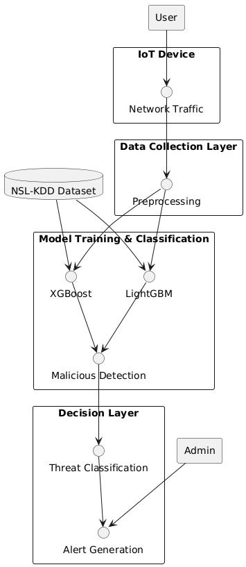 ThecombinationofXGBoostandLightGBMcreatesasystemthatenjoyshighaccuracyinclassification,andsubsequently, minimizes false positives and false negatives. False positives occur when the system wrongly classifies benign traffic as malicious;thisleadstothegenerationofunnecessaryalertsandmaydisruptnormaloperations.Ontheotherhand,false negativesimplythatmalicioustrafficgoesundetected[4],andsuchcyber-attacksmaygounnoticed,therebyjeopardizingthe securityofthesystem.Thisworkensuresthattheproposedsolutionishighlyaccurate,andtherefore,IoTsystemsrespond quicklyandeffectivelyagainstcyberthreats.ThebenefitsofusingXGBoostandLightGBMinthistaskarenumerous.Both algorithmsarecapableofhandlinglarge-scaledatawithminimalcomputationalcost,makingthemwell-suitedforreal-time applications.Moreover,thesealgorithmscaneasilybetunedtooptimizetheirperformance,ensuringthattheycanadapttothe evolvingnatureofcyber-attacks.