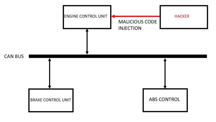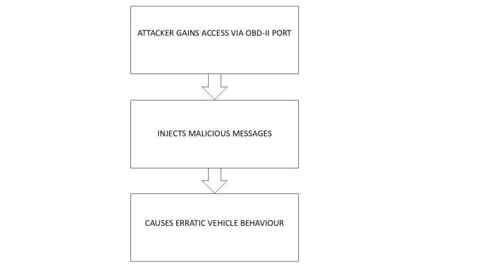 The absence of authentication does allow the attackertoinjectmaliciousmessagesthroughthe maliciouscode.Potentiallydisturbingtheimportant functionalities of the vehicle such as steering, braking,infotainmentsystemetc.