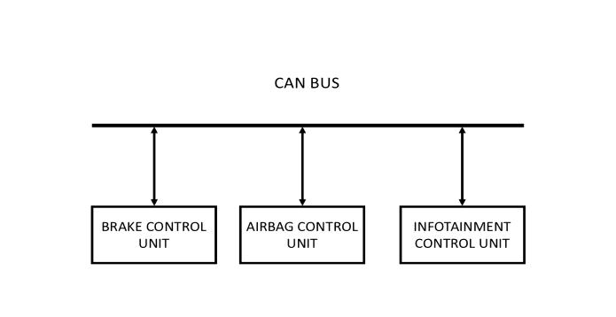 Figure -1:ACANBusconnectingvariousECUs(E.g.,Brake ControlUnit,AirbagControlUnit,InfotainmentControl Unit)