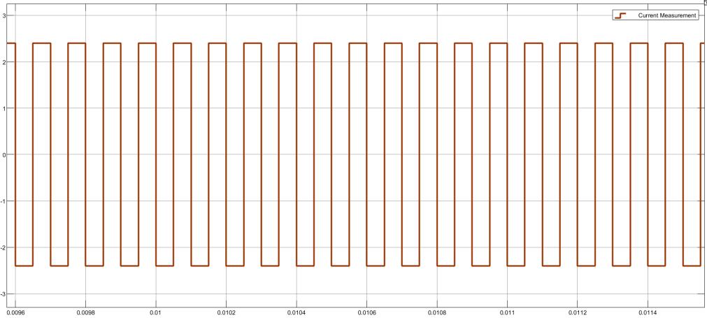 Theabovefigureshowsthecurrentmeasurementwaveformcapturedduringasimulatedelectronicoperation.Theplotdisplays aperiodicpulsewaveformwithsharptransitionsbetweenhighandlowamplitudes.Thehorizontalaxisdenotestimeinseconds, ranging from 0.0096 to 0.0115 seconds, while the vertical axis shows the current level in amps. The waveform repeatedly transitionsbetween+2ampsand-2amps,reflectingitspulse-likenature.Eachpulsemaintainsitsrespectivehighorlowstate for nearly 0.0001 seconds before switching, which highlights its periodic and systematic variation. This pulse waveform is typicallyusedinelectroniccontrolsignals,datatransmission,orfortestingandverifyingelectroniccomponents’functionality. The high-frequency pulse signals enable reliable operation within circuits and aid in understanding their dynamic response. Overall,thisplotemphasizeshowpulsesignalscancarryinformation,controlmechanisms,orperformdiagnosticsinarangeof electronicapplications,demonstratingtheirsignificanceinmodernelectronicdesign.