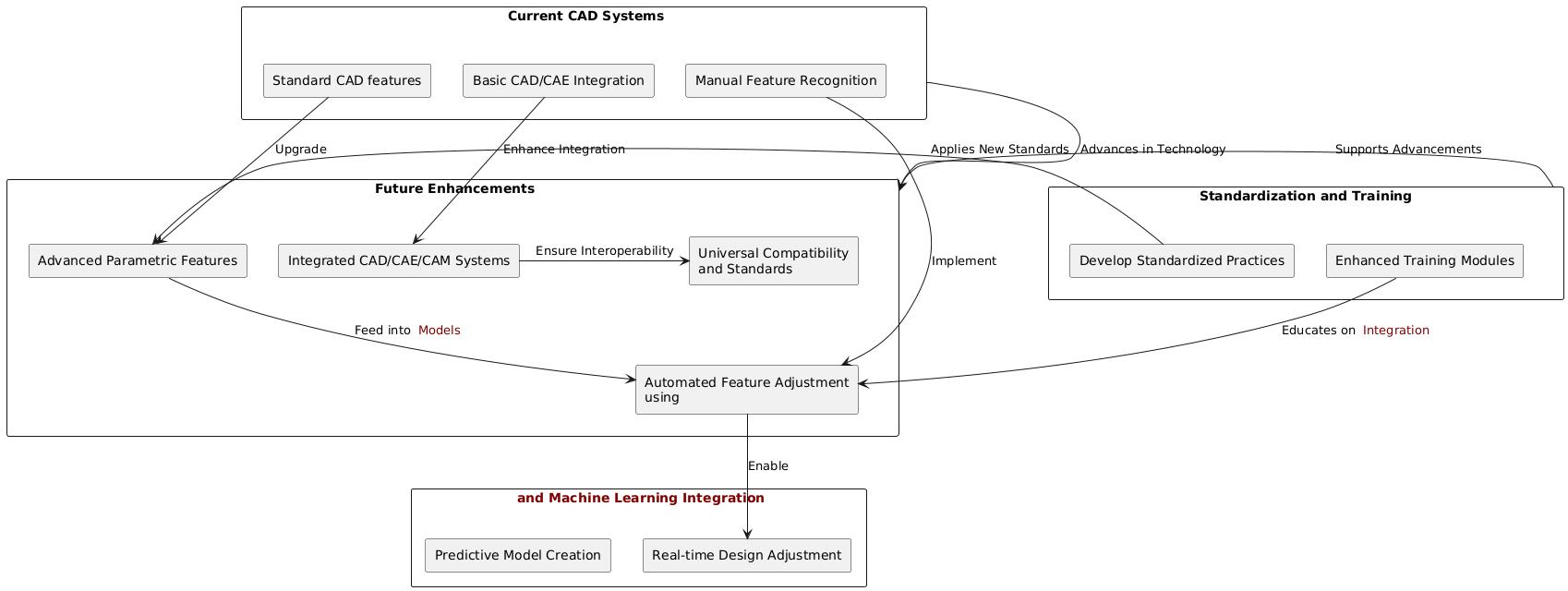 Developments in CAD systems' feature identification capabilities have the potential to significantly improve design process accuracy and productivity in a variety of industries.ItisanticipatedthatasAIandmachinelearning become more integrated, parametric CAD systems will be redefined,allowingforincreasinglycomplexandintelligent featurerecognitioncapabilities.Bylearningfromprevious patternsandresults,thesetechnologieswillnotonlymakeit easiertomodifydesignsbasedonreal-timedata,butthey willalsobeabletoanticipatedesignneeds.Byautomating repetitiveprocessesandprovidingpredictiveinsights,this proactive approach could drastically cut down on design time and errors while assisting designers in following predeterminedstandardsandspecifications.[14]