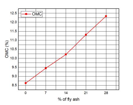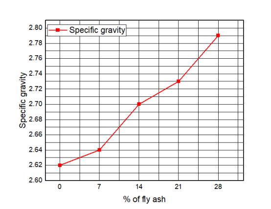 Theresultsofthetestsshowedthatthebehaviorofsoilwith differentlevelsofflyashcontentwasquiteobvious.Forthe SpecificGravityTest,untreatedsoilhadavalueof2.62and at 28% fly ash it was 2.79, which means that the fine and denseparticlesofflyashmarginallyincreasedthespecific gravity