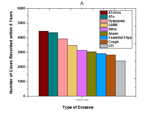 (AToUns),Acute tonsillitis (ATo), Dyspepsia, General adult medical examination (GAME), Bacterial intestinal infections, unspecified (BIUN),Acute nasopharyngitis (Anaso),Essential hypertension (Ehyp),Cough, Examination for driving license (ExaDL),Urinary tract infection, site not specified (UTI))