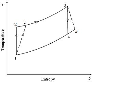 Thecompressionefficiencycanbedefinedas(Forthereversibleadiabaticprocess1-2s)