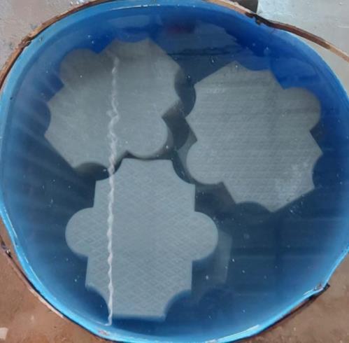 Theconcretemix,preparedwiththerespectiveproportions, is subjected to a thorough dry mixing process to ensure uniform distribution of fine and coarse aggregates. Subsequently, water containing dispersed graphene and lignosulfonateisaddedgraduallywhilecontinuouslymixing toachievehomogeneity.Thefreshconcreteisthenpoured into Torus paver block moulds pre-coated with a release agenttopreventsticking.Thesamplepreparationfolloweda two-layer casting approach to optimize the load-bearing propertiesofthepaverblocks.