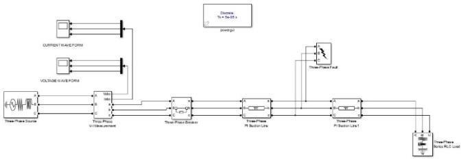 Abstract - Thegoalofthisstudyistocreateasimulation modelusingMATLABthatcanbeusedtoexaminedifferent kinds of three-phase faults in electrical transmission line systems. Single line-to-ground, double line-to-ground, and line-to-line faults all of which are frequent in longdistance power transmission networks as well as symmetrical (triple line-to-ground) faults are included in the study. The changes in system characteristics, such voltage and current, under various fault scenarios are investigated through simulation. The results of this study advanceourknowledgeoffaultbehaviorandofferauseful toolforMATLAB-basedfaultanalysisandsystemprotection studies.
