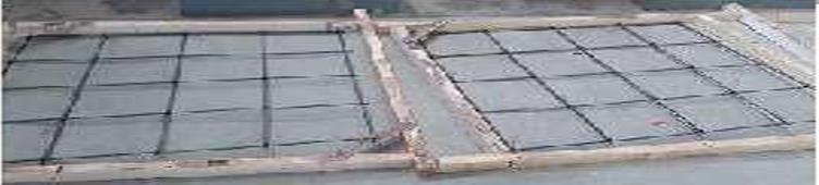 Theexperimentalprograminvolvedcastingandtestingnine RCslabsofdimensions1100×1100×60mm.Threeslabs were tested as control specimens, while six slabs were strengthened using Glass FRCM with two and four layers. ConcreteofgradeM30wasused,withacompressivestrength of approximately 40.8 MPa on the day of testing. Reinforcement consisted of 8 mm diameter bars placed at 120 mm c/c in both directions. The Glass FRCM had an averagethicknessof0.70mm,massperunitarea of0.310 kg/m²,andtensilestrengthof1250N.