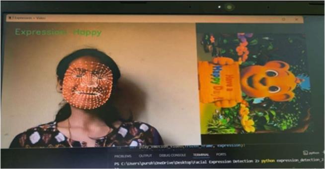 Thisinteractiveoutputincreasesthepracticalusefulness of the project for applications in education, entertainment, human–computer interaction, and emotionalfeedbacksystems.