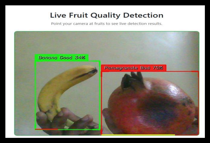 Themainobjectiveofthisstudyistodesignanintelligent, automatedframeworkforreal-timefruitqualityassessment usingdeeplearning.The projectfocusesonimplementing InceptionResNetV2 as the primary feature extractor, enhancedwithcustomdenseanddropoutlayers,toachieve precisemulticlassclassificationoffruitsinto Good, Bad,and Mixed categories. A diverse fruit image dataset, including apples, bananas, guavas, lemons, limes, oranges, and pomegranates, is utilized to ensure robust model performance. Additionally, the system is deployed via a Flask-based web application, enabling users to upload images, receive instant predictions, and access quality insights and recommendations, supporting practical, realtimeusabilityinagriculturalandcommercialsettings.