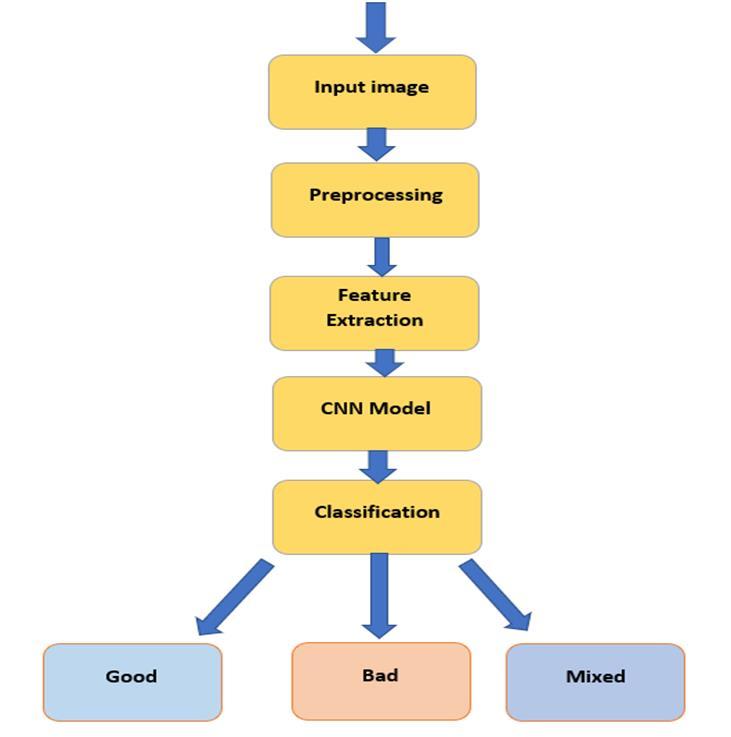 1) Data Collection:Acomprehensivedatasetoffruitimages was obtained from Kaggle, covering multiple fruit types including apples, bananas, guavas,lemons,limes, oranges, and pomegranates. Each fruit type contains images categorizedintoqualityclasses: Good, Bad,and Mixed.The datasetprovidesadiversesetofimageswithvariationsin