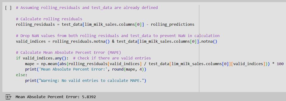 Anydeviationsbetweentheobservedandpredictedvalues canindicateerrorsintheforecastingprocessorunexpected factors affecting milk sales, such as changes in demand, supply,orexternalevents.