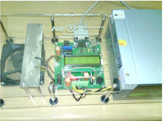 Attheheartofthesystemisanichromecoilthatactsasthe heating element. When an electric current passes through thiscoil,itgeneratesheatduetoitsresistivenature.Aniron plateisplacednearthecoil(approximately3.5mmaway)to absorbandretainthisheat.Thetemperaturesensor,typically athermistororthermocouple,ispositionedclosetotheplate toaccuratelymeasureitssurfacetemperatureinrealtime. This temperature data is sent to the ATmega16 microcontroller,whichservesasthebrainofthesystem.The controller compares the measured temperature with the desiredreferencetemperatureorsetpoint. Toregulatethe heat output, the system employs Pulse Width Modulation (PWM). By varying the duty cycle of the PWM signal, the controller adjusts the power supplied to the heating coil, therebycontrollingtherateoftemperatureincrease.When the system exceeds the desired temperature, a 12V fan locatedbeneaththeheaterisactivatedtocooldowntheiron plate,ensuringthatthesystemremainswithinsafeoperating limits. AnLCDdisplaymountedontheboardshowsreal-time datasuchascurrenttemperature,heaterandfanstates,and serial communication status, providing a user-friendly interface. This continuous process of measurement, comparison, and correction allows the SBHS to track