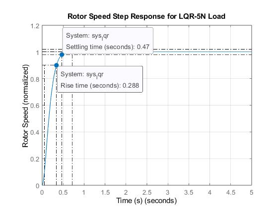 Infigure4.4,therotorspeedstepresponseofPID-basedDualStatorInductionMachinesunder5Nloaddisturbanceshows a risetimeof0.213second andsettlingtimeof0.598second whileinfigure4.6,thestepresponseoftheLQRbasedDual Stator Induction Machine under 5N load disturbance shows a rise time of 0.288 second and settling time of 0.47 second. Thesettlingtimeinthecaseof LQRislessthaninPIDshowingimprovementofLQRoverPID.