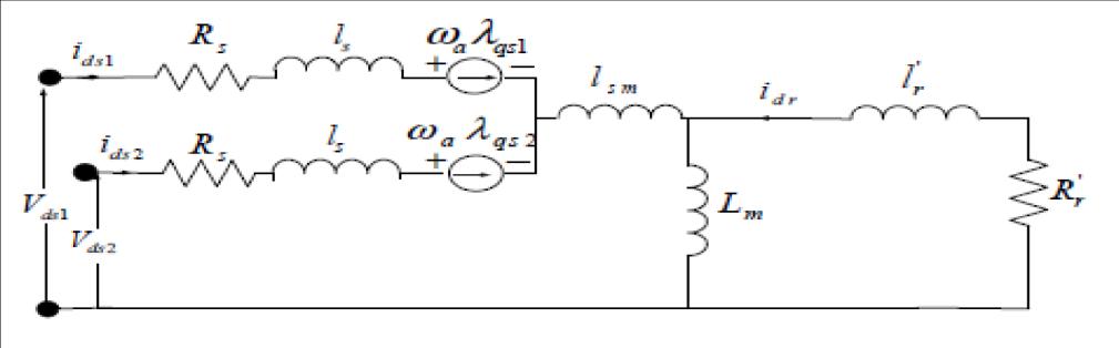 The equations from 2.1 to 2.14 propose the equivalent circuit as shown in figure 2.3. The common mutual leakage inductanceexpressesthepointthatthetwosetsofstatorwindingsoccupythesameslotsandare,thus,theyaremutually coupledbyacomponentofleakageflux (Singh et al, 2003)[8].