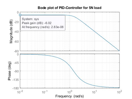 4.7: Bode plot of the PID-based DSIM showing peak gain (5N)