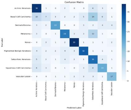 Accuracy: The model's overall performance is measured in terms of how accurately it can classifyskinlesions.