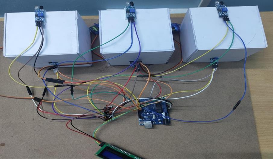 TheFigure- 2depicts theworkingprototypemodel ofIoT BasedSmartMedicineBox.Thepowercircuitconsistsofa powersupplyof12-voltACconvertedintoDCusingbridge rectifier, Voltage regulator regulates input 12 volts into 5 volts.Themedicineboxesareconnectedtomicrocontroller withIRsensoroneachmedicinebox.Itwilldetectwhether patient is taking medicine or not. If patient is taking medicine the IR sensor will detect and update data to IoT part.Timerissetforeachmedicineboxiftimerconditionis satisfied then it automatically gives LED blink and it will open the medicine box. It will wait for some time for exampleifboxopenat8a.m.itwillwaittillupto9:00a.m.in between if medicine has taken by patient, it will automatically close. Similarly, the details regarding medicines will be fed to IoT through Arduino, so when medicineexpiresitwillremindusersbygivingLCDdisplay asMEDICINEEXPIRESandbuzzersothatusercaneasilyget thedetailsofmedicines.
