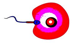 Fig-3 ;HumanOva,Spermandtheirfusion;EverypartishavingNucleus,PositiveandNegative