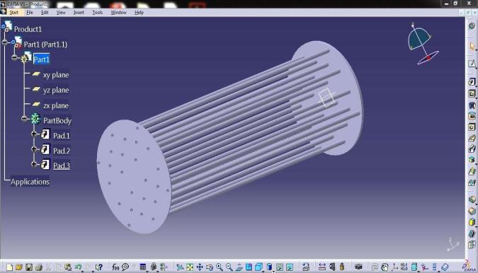 TocreatetheheatexchangerCATIAV5-6R2015softwareis used.Heretheheatexchangermainlyconsistsoftwoparts, they are, one is pipes, second one shell, All these are individualcomponents