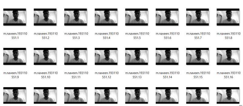 Ourdataset,whichincludes50imagesofeachemployee, was developed. A real-time web camera is used to test our technology, capturing the faces of the employee After preprocessing, some sample photos are shown in Fig.6.
