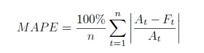 Where n is the total number of forecast values, At and Ft denotetheactualandforecastvalueattime t,respectively.