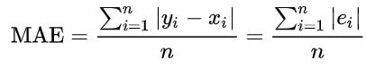 It is the average of the absolute errors ei, where yi is the prediction and xi the true value. Note that alternative formulations may include relative frequencies as weight factors.