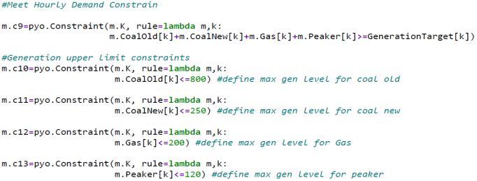 Inordertovisualizethebehaviorofeachpowergenerated foreachplantversustime(inhours),thecodesinfigure3 has been inserted in Python taking in consideration the valuesoftheconstraintsforeachpowerplant