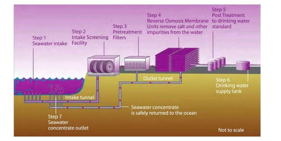 Becauseyouwanttodesalinatepureseawater,waterisfirst filtered through intake filters to remove any particles, biologicalmatter,oranythingelsethatmakesitimpure.The desalinationprocessisveryeffectiveatremovingsaltand nothingelse.Thesewhichwasbeforefilterscanbemadeof sandorultrafiltrationmembranes.