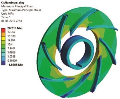 Fig-9: MaximumPrincipalStressofAl2014 Impeller
