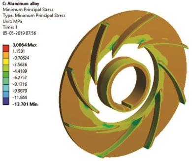 Fig-10: MinimumPrincipalStressofAl2014 Impeller